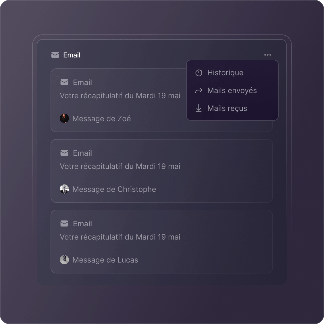 Retrouvez vos mails directement dans le bon dossier. Historique complet de vos échanges (mails reçus et envoyés).