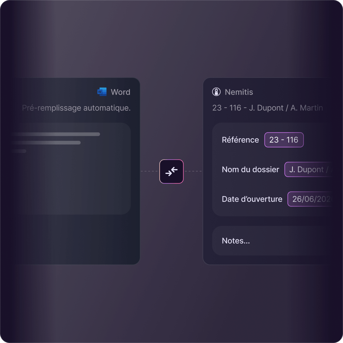 Utilisez vos modèles de mails personnalisables, avec objet et contenu pré-remplis. Ajoutez en un clic vos documents prêts à l’emploi. À l’envoi, le mail est automatiquement affecté au bon dossier pour assurer la traçabilité.
