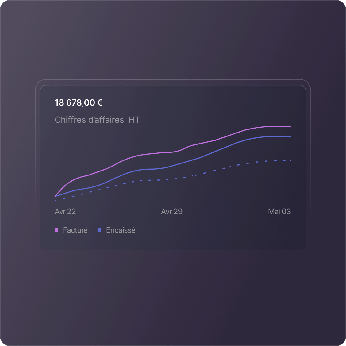 Facturé vs encaissé, toujours à jour. Courbes claires de l’évolution de votre CA mois par mois.