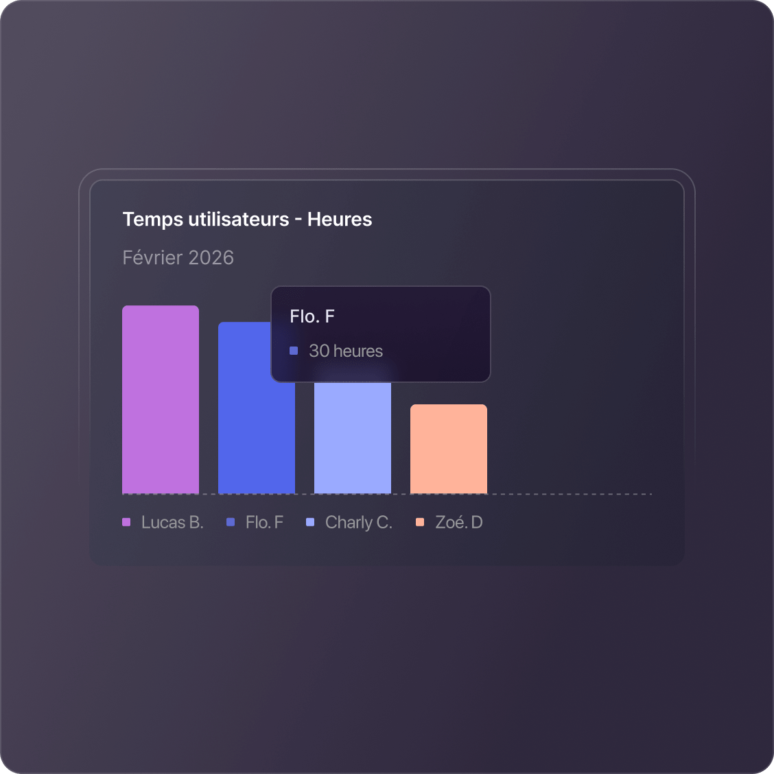 Répartition des temps par utilisateur. Suivi de la charge de travail en temps réel.